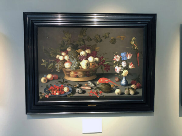 Balthasar van der Ast, a native of Middelburg, trained in the studio of his brother-in-law Ambrosius Bosschaert the Elder, whom he followed to Bergen-op-Zoom, to Utrecht, and ultimately to Delft where he enrolled in the painter’s guild and remained until his death in 1657. Van der Ast was highly esteemed in the seventeenth-century and his work could be found in some of Europe’s most distinguished collections including the prince of Orange, Frederik Hendrik, and his wife Amalia von Solms. Notably, two paintings by his hand were cited in their 1632 collection inventory as ‘a basket with fruit and a basket with flowers’ (now in the National Gallery of Art, Washington, D.C., inv. nos. 1992.51.2 & 1992.51.1).