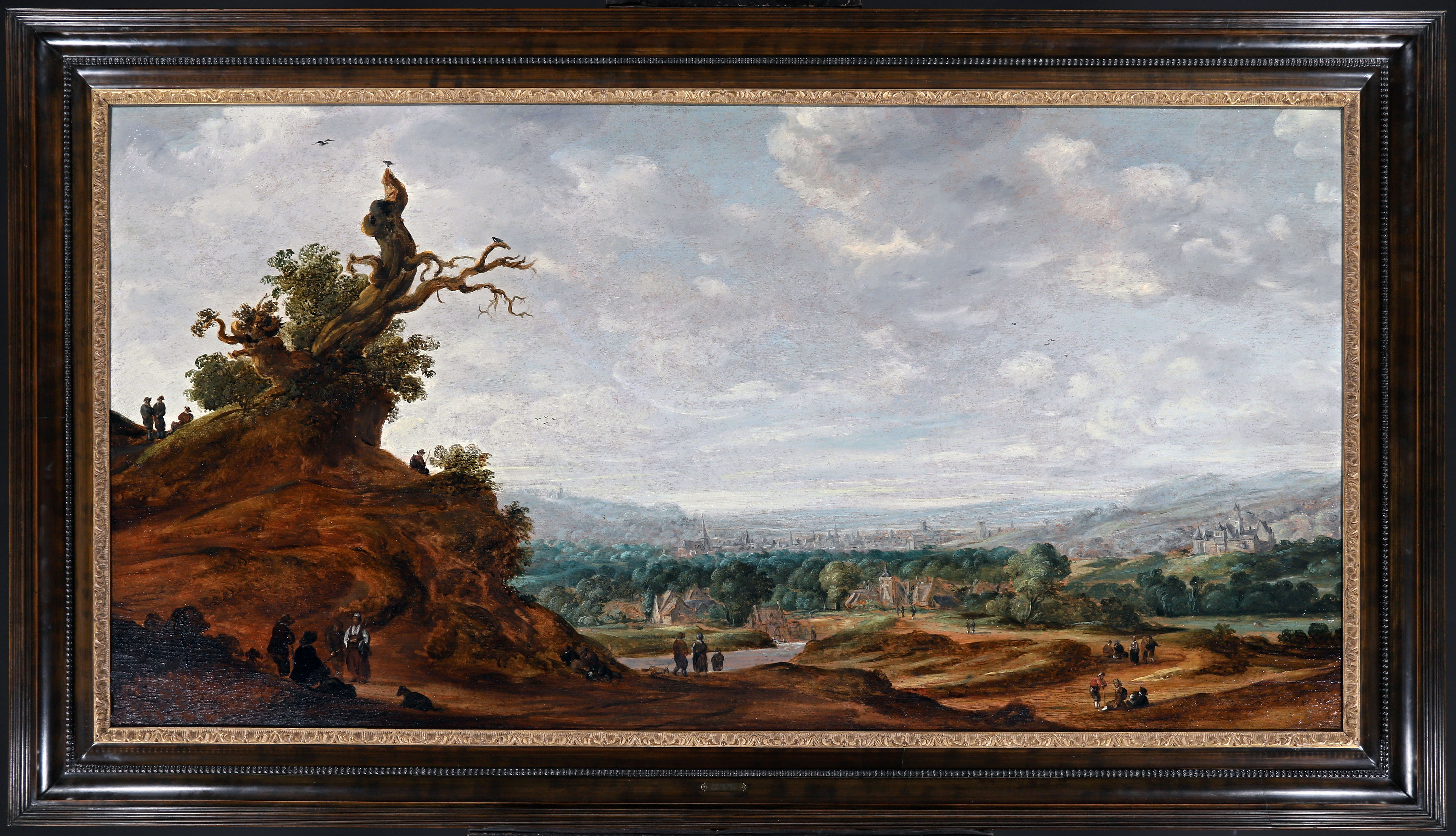 Jan de Vos was a Dutch painter, working in the city of Leiden. From H. U. Beck, ‘Künstler um Jan van Goyen’, Jan de Vos I, we find the town views of Cologne, Wesel, Noordwijk and Delft, with Wouter Knijff-like figures. For his extensive landscapes and views Jan de Vos I preferred horizontal pieces. Apart from town views he painted landscapes with bare, knotted trees in the foreground. ‘Jan de Vos’ manner of painting reminds one of Jan van Goyen.