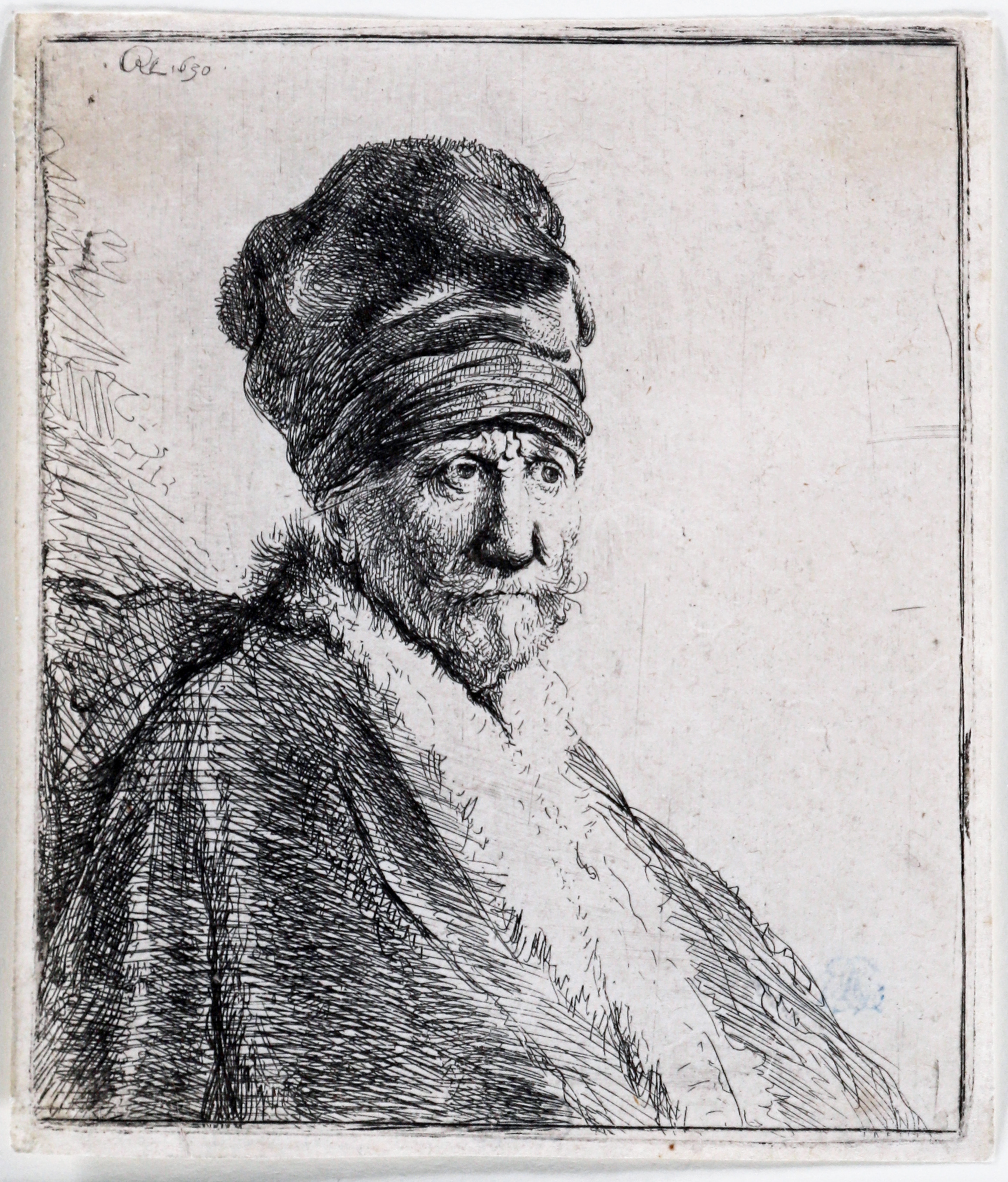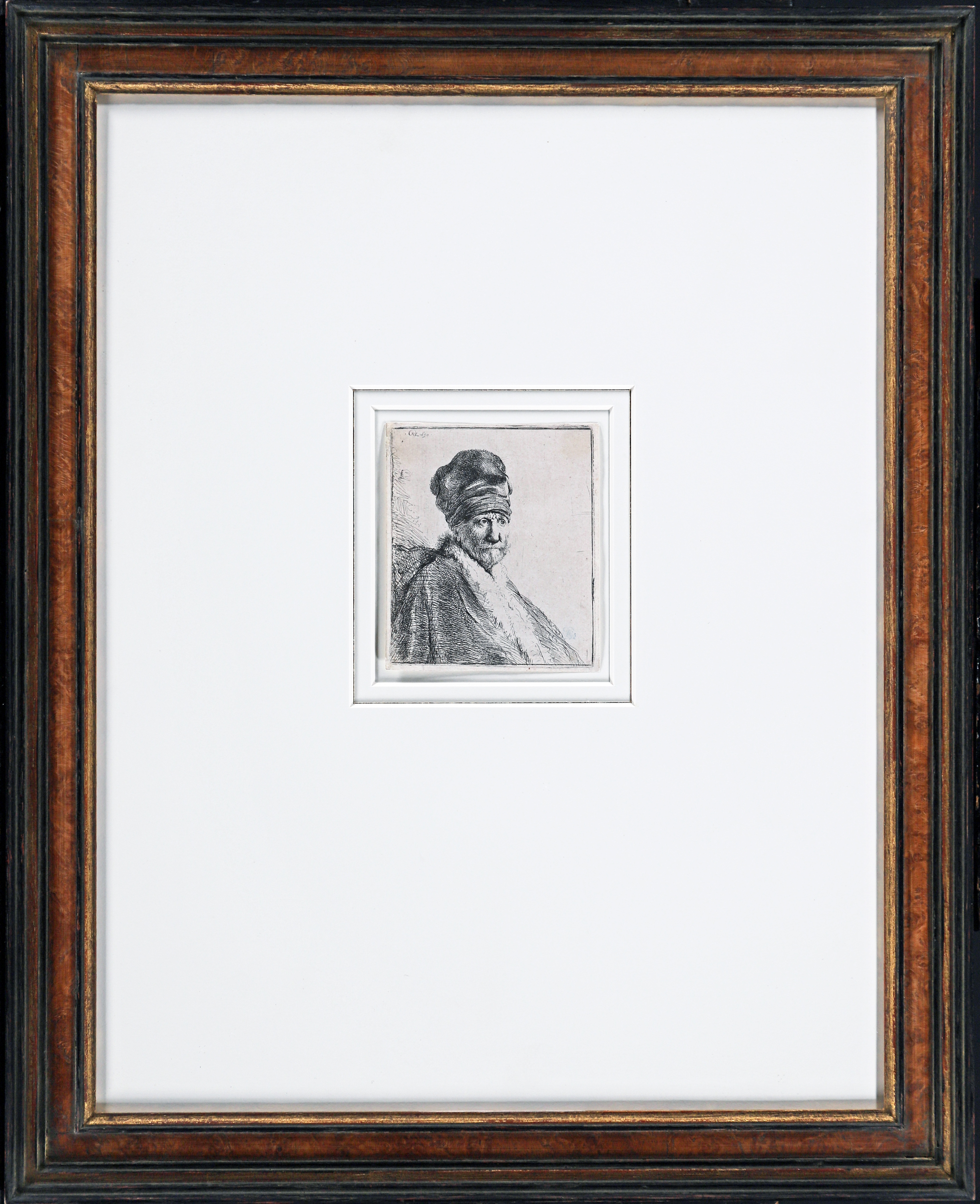 A very early etching by Rembrandt a man wearing a turban. It is widely believed to be the father of Rembrandt, however this cannot be said for certain. Rembrandt was only 24 years old when he etched this fantastic portrait. His mastery of etching is able to convey a certain emotion through the sitter’s eyes.