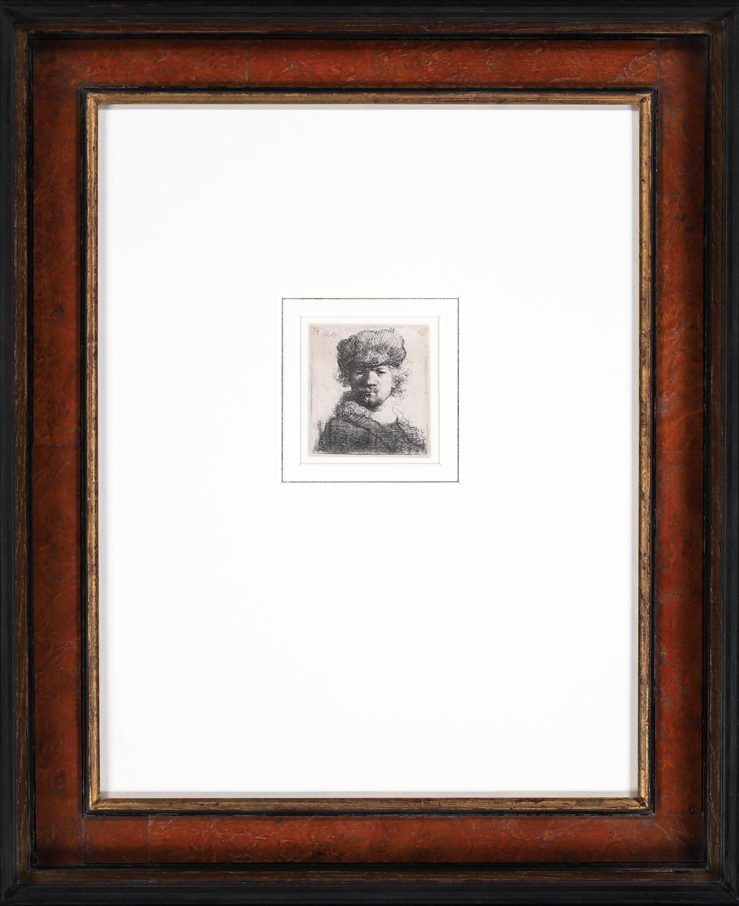 Rembrandt van Rijn etching print for sale / ets te koop / gravure a vendre - Self-portrait in a heavy fur cap, 1631 frame